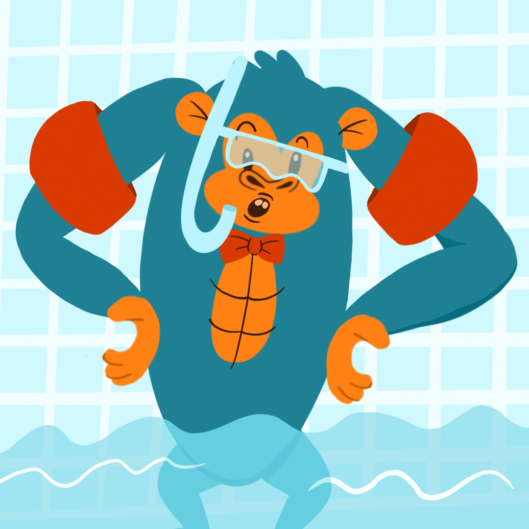 "description": "Sofia ottaa Brunon mukaansa uimakouluun. Ison gorillan astuessa altaaseen ei pärskeestä ja roiskeesta ole puutetta.",